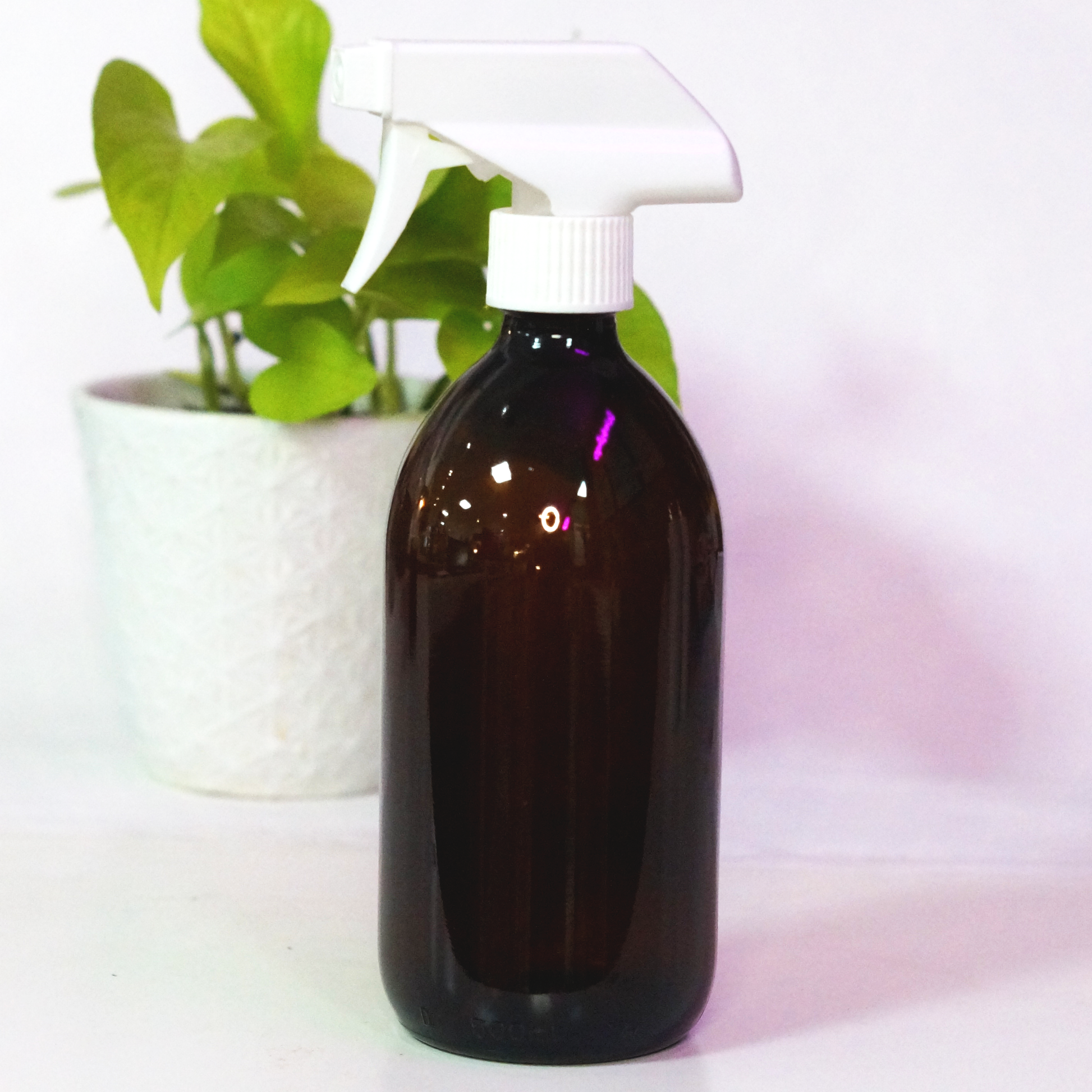 Versatile 500ml amber glass bottle with choice of spray or pump cap.