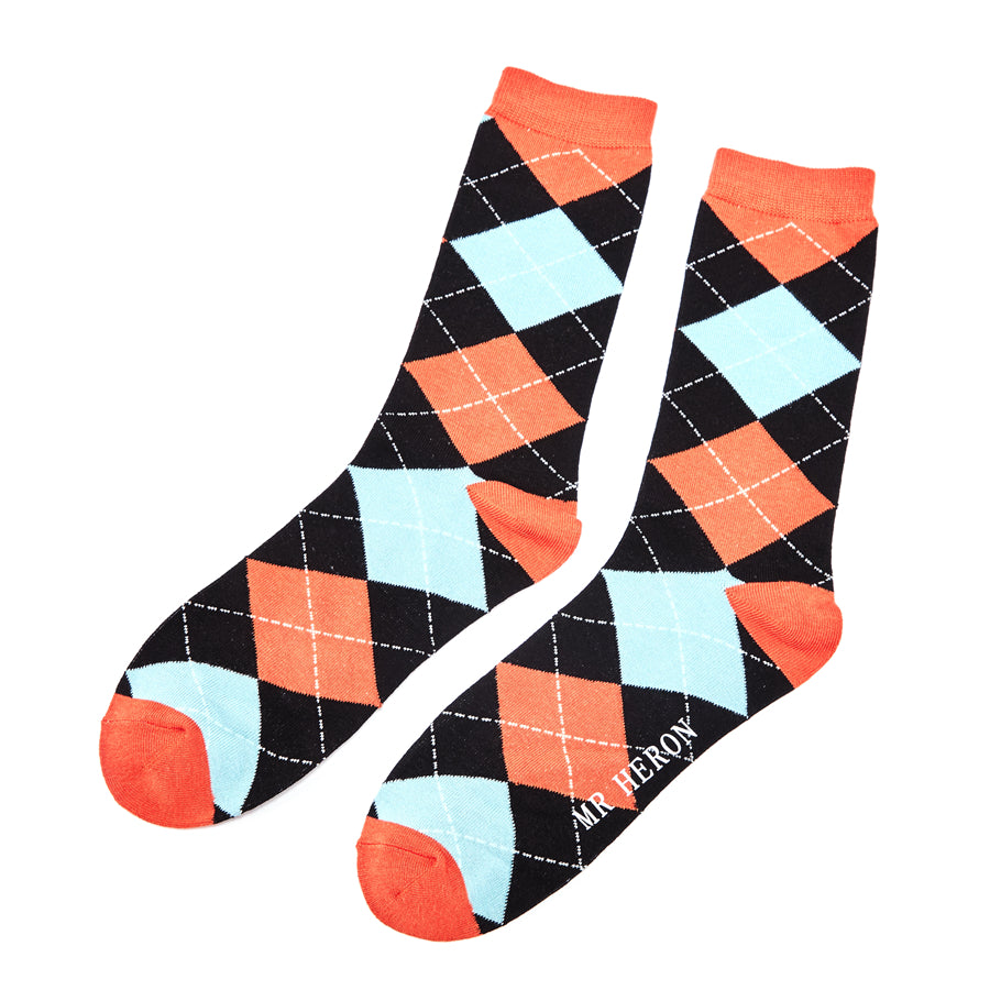 Step into style and comfort with our Black, Orange, and White Argyle Socks from the Mr Heron collection. These aren't just socks; they're a statement of sophistication with a playful twist.