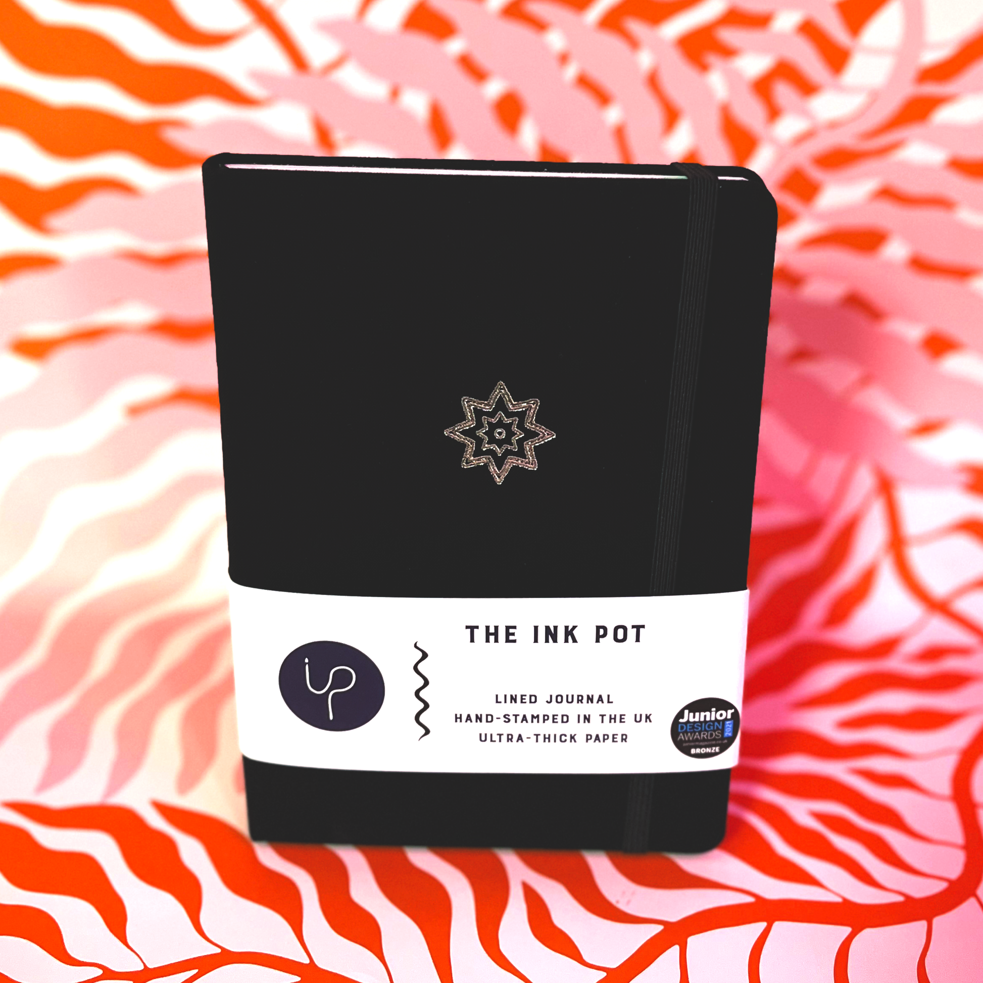 From The Ink Pot collection, this classic black lined journal features a minimalist design and crisp white pages.