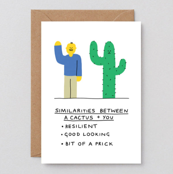 Sometimes the best compliments come with a little spike! This delightfully cheeky card puts your favorite person up against nature's most resilient plant - and guess who wins? With Holly St Clair's signature whimsical illustration style, this card delivers love and encouragement wrapped in tongue-in-cheek humor that's sure to make them smile.