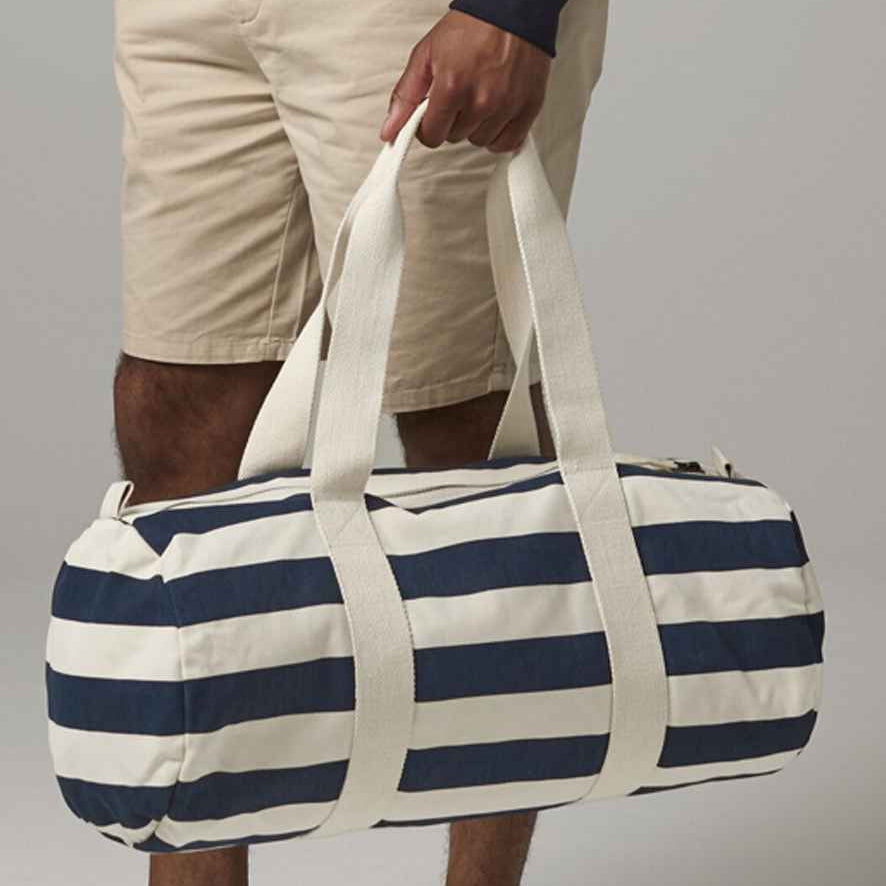 100% Cotton Canvas Navy Striped Barrel Bag - 20L