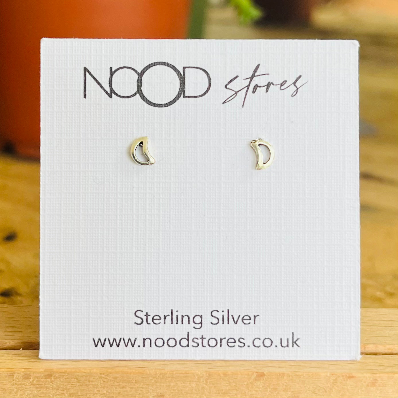 These sleek crescent moon studs blend celestial style with versatile wear.