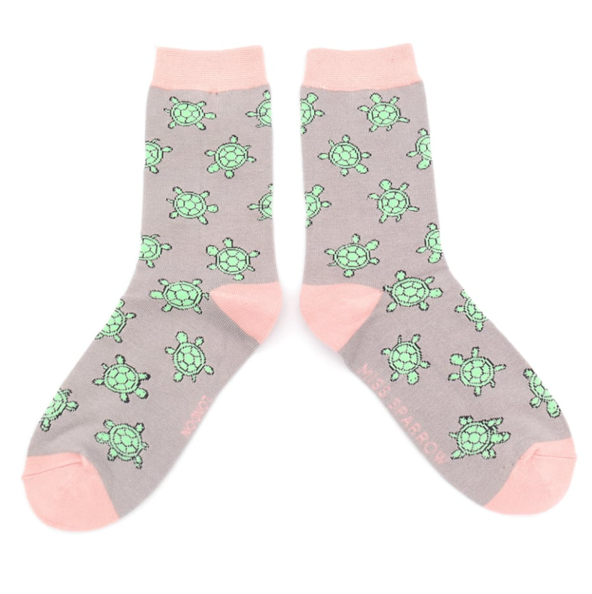 Make a statement with our Grey Turtle Bamboo Socks featuring a delicate turtle motif.
