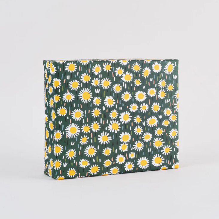 Brighten any gift with our "Daisy" wrapping paper featuring bursts of sunny yellow flowers on a fresh, floral background.