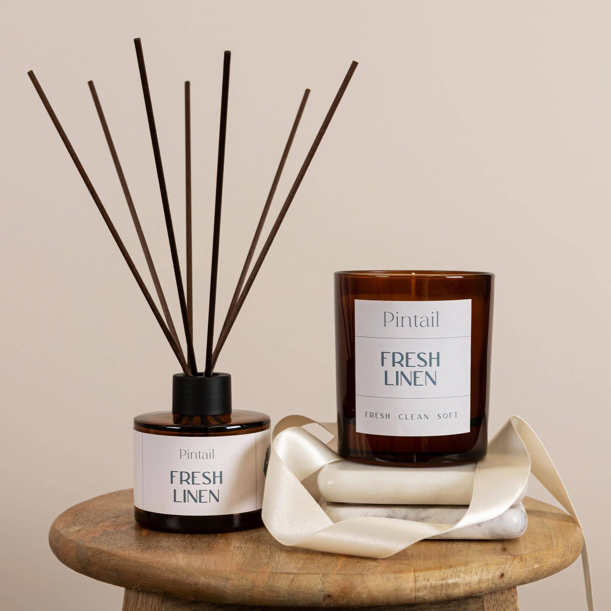 Find serenity and restoration with our Fresh Linen Reed Diffuser, capturing the blissful moment of sliding into crisp new bedsheets at your favourite getaway.