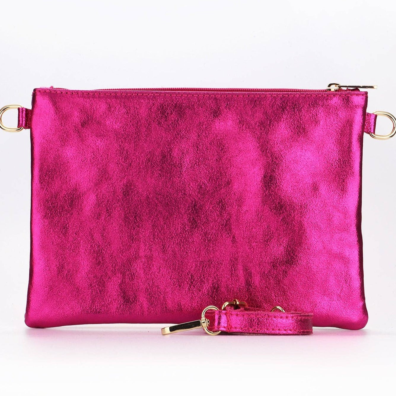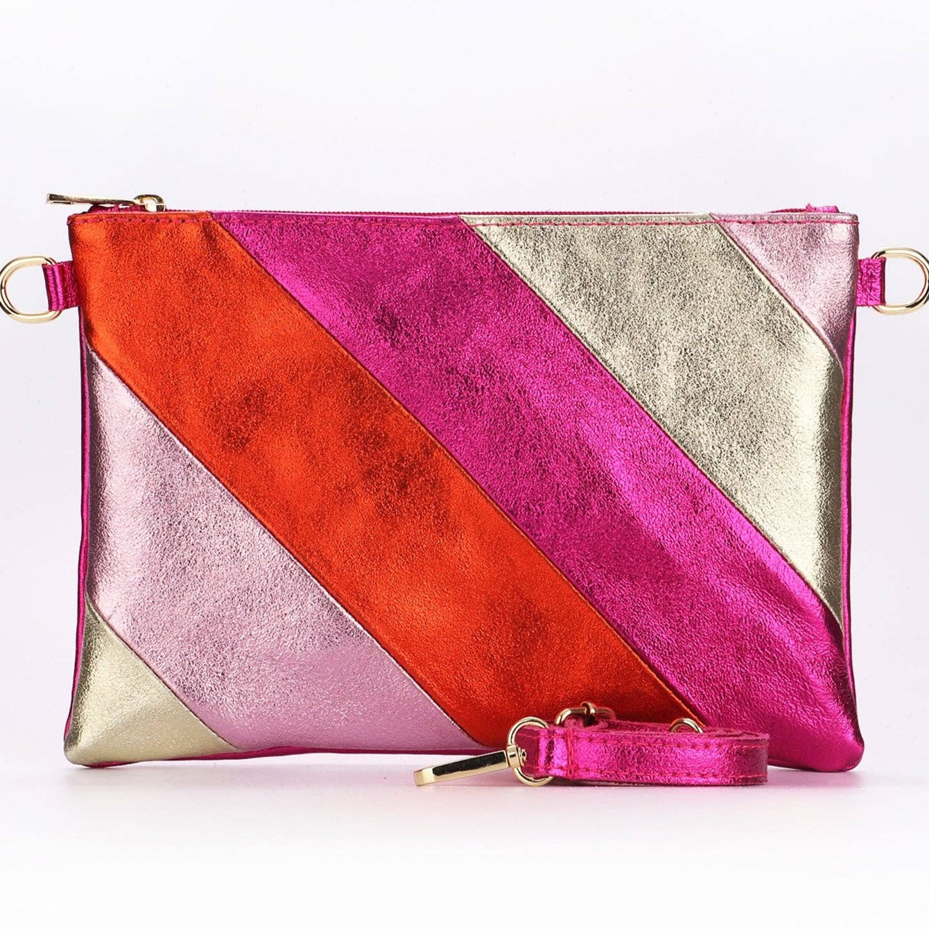 Italian Leather Clutch Bag with Strap Pink Rainbow: One-size