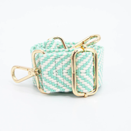 Refresh your handbag collection with this beautifully crafted mint green crossbody strap featuring an intricate woven chevron pattern. The soft mint tone brings a fresh, contemporary feel to any bag while the textured chevron weave adds visual depth and sophisticated detail that elevates your everyday accessories.