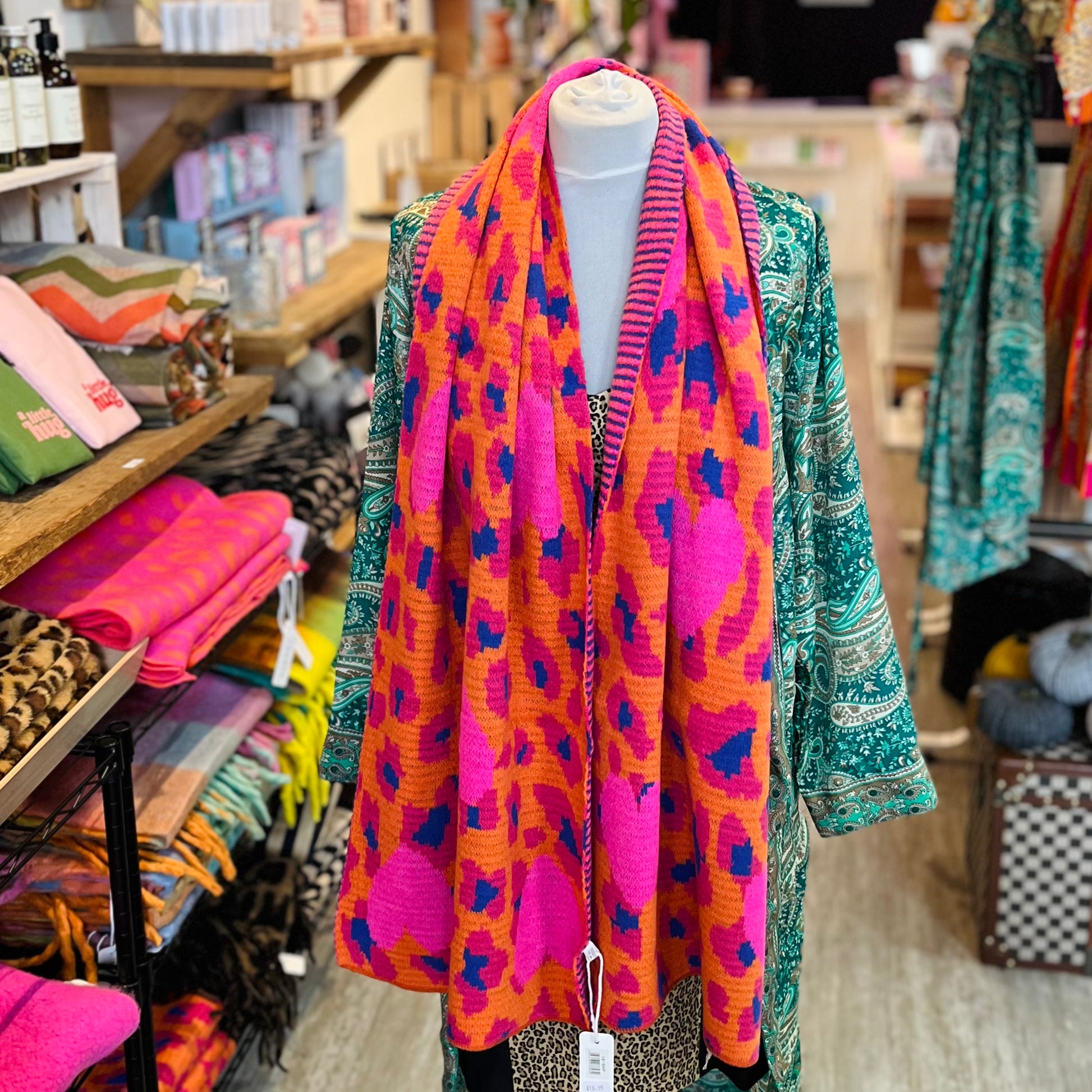 Hot Pink Leopard & Hearts Heavyweight Scarf