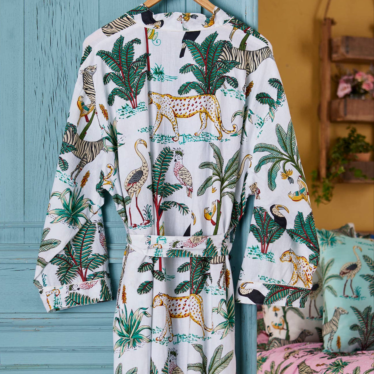 Step into a tropical paradise with our Jungle Print dressing gown.