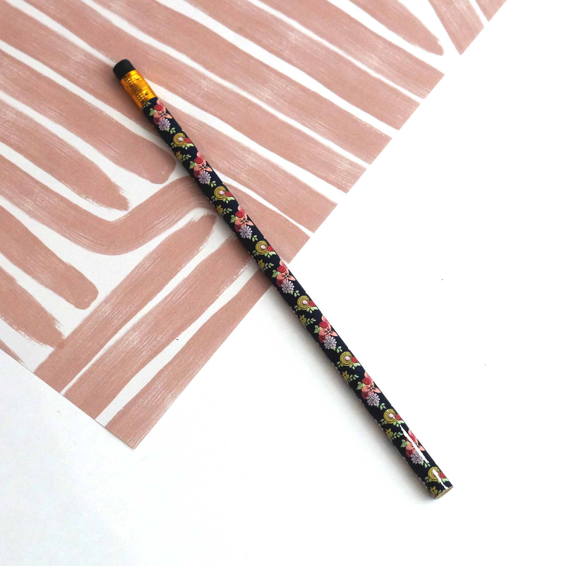 Bring joy to your writing with this navy blue bloom pattern pencil.