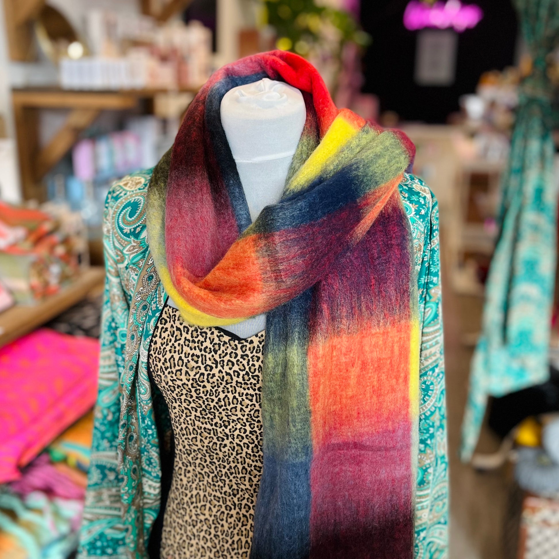 Make a bold statement this season with our Red Colour Block Scarf, a vibrant and contemporary take on a winter classic. Crafted from soft, textured acrylic yarn, this oversized scarf delivers both warmth and comfort while adding a touch of modern flair to your cold-weather wardrobe. The striking square colour block design and bohemian-inspired tasselled fringe create a playful yet sophisticated look that pairs effortlessly with any outdoor attire. Perfect for brightening up chilly days in style.