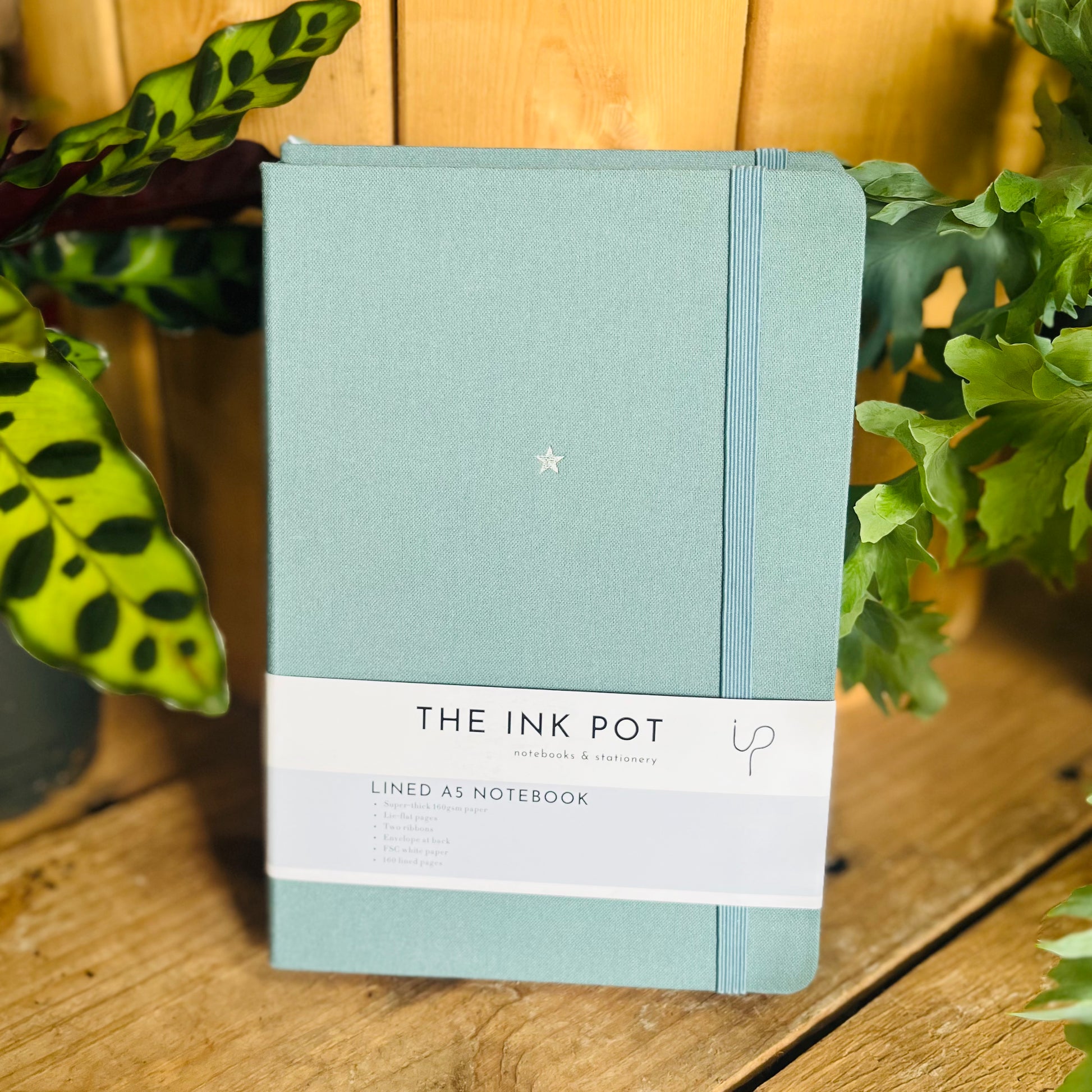 Embrace sophistication with our teal lined journal, featuring a small striking design on the cover.