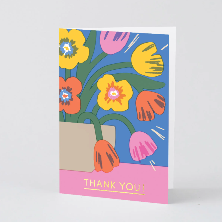 Say thank you in style with our "Thank You Tulips" card featuring Elena Boils' bright, beautiful tulip illustration enhanced with luxurious gold foil detailing.