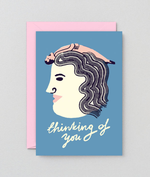 A card to show you care. Beautifully drawn by Rozalina Burkova on forget-me-not blue. Packed with a candy pink envelope.
