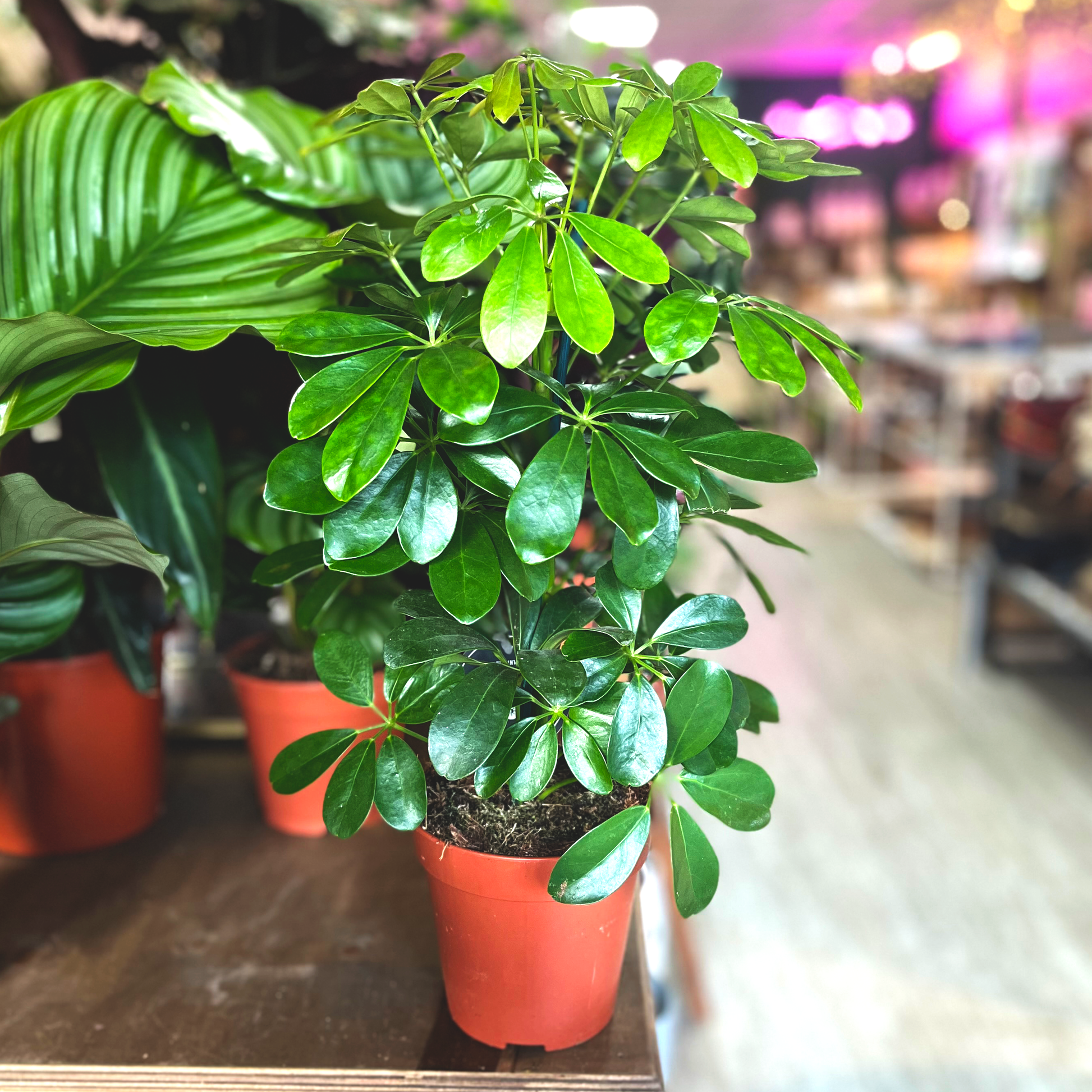 The umbrella plant likes bright, indirect light. It can tolerate a little direct sun, but not too much!