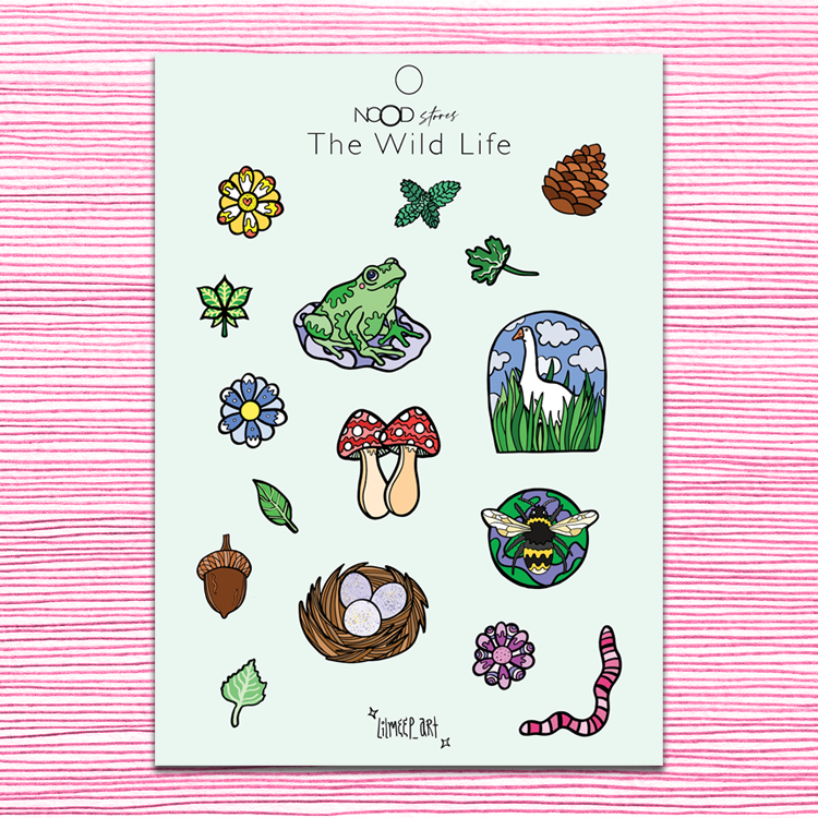 A5 sticker sheet featuring British wildlife illustrations designed by lilmeep_art. Printed on pale green vinyl background, these stickers celebrate local fauna in a playful style. 15 stickers included on the sheet.